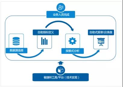 ? 敏捷的數(shù)據(jù)分析和快速響應(yīng)能力。自助式BI的業(yè)務(wù)流程中,業(yè)務(wù)人員可以自助式的實(shí)現(xiàn)數(shù)據(jù)源連接、指標(biāo)集定義、探索式分析、高效查詢和自助的報表制作和儀表盤展示,即時響應(yīng)需示變化,并可實(shí)現(xiàn)信息共享。