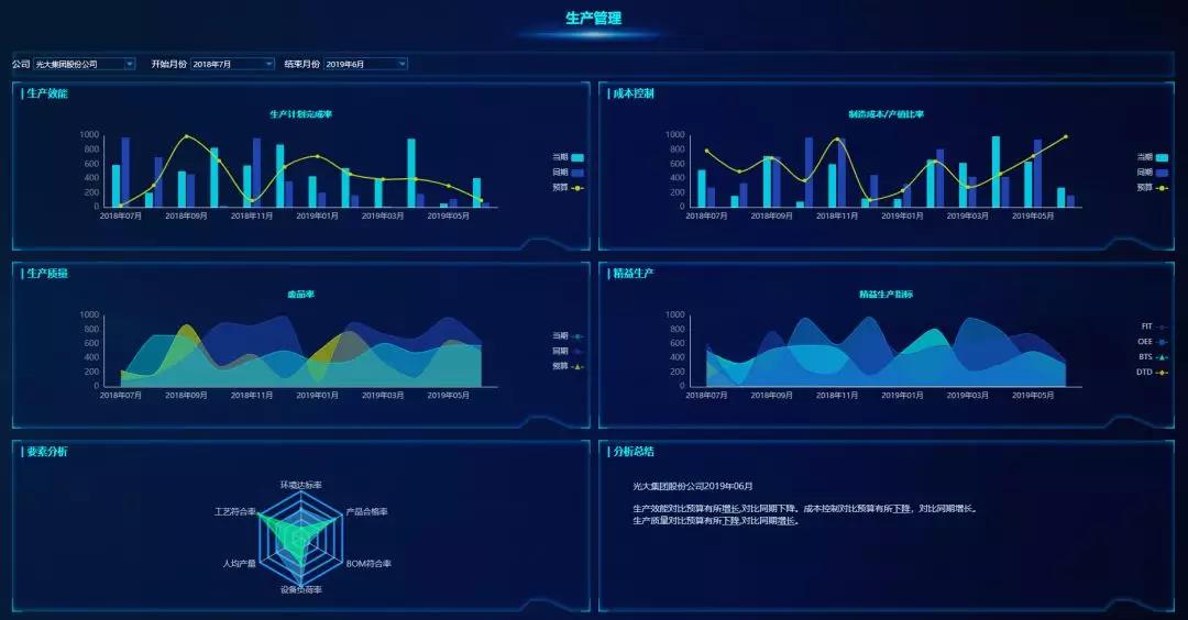 下圖是用億信ABI搭建的生產(chǎn)數(shù)據(jù)分析平臺(tái),都是用于實(shí)際生產(chǎn)的可視化報(bào)表。