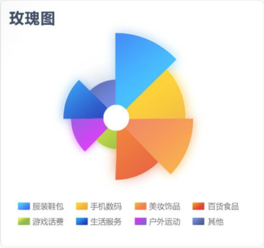餅圖 一般通過(guò)顏色區(qū)分類別,幅度的大小對(duì)比數(shù)據(jù),并且可以展示各類別與整體之間的占比關(guān)系。
